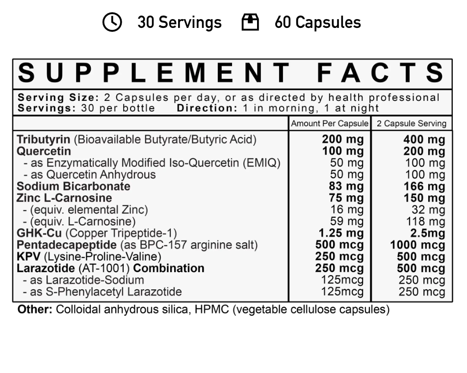 Support your gut where it matters most. Ultimate GI Repair is a comprehensive formula combining four clinically relevant, bioavailable peptides with targeted nutrients to help maintain gut lining integrity, support immune balance, and promote recovery from dietary and lifestyle stressors.